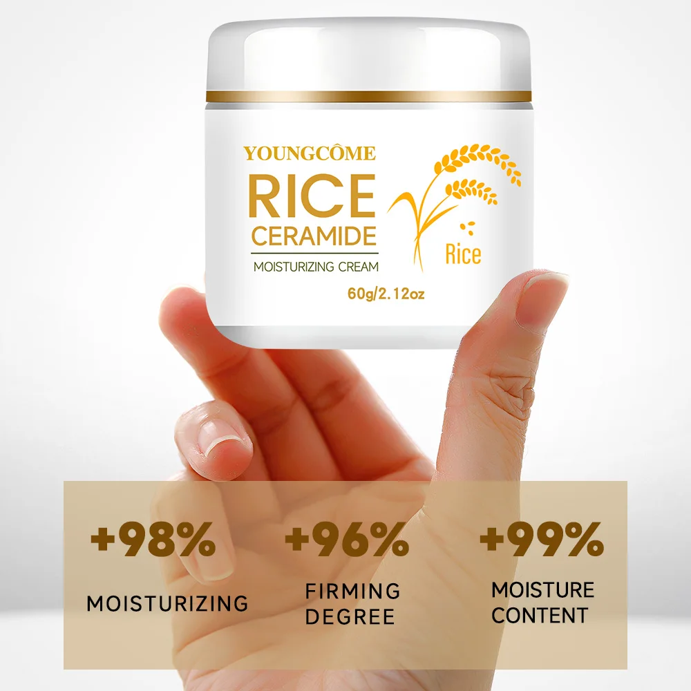 The rice within the cream has various benefical effects to skin, such as exfoliating dead skin cells and moisturizing skin.